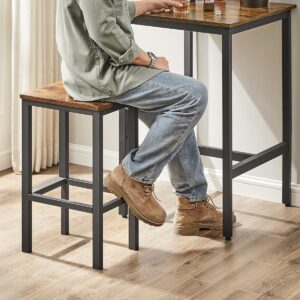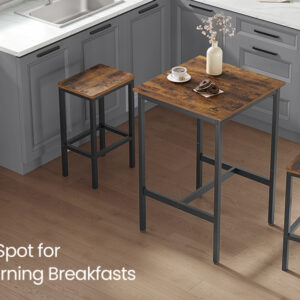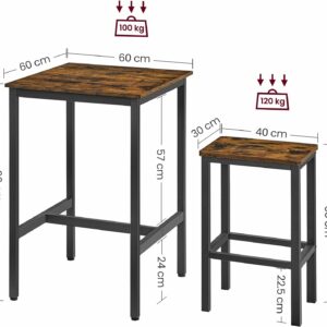 Fie ca doriti sa creati o mica zona de luat masa in bucatarie, un bar de cafea pentru a savura bauturi casual sau chiar un mic atelier in casa dvs. acest set de mese de bar este alegerea perfecta pentru toate optiunile. A 60 x 60 x 90 cm-es asztallal és 30 x 40 x 65 cm-es székekkel ez az étkezőgarnitúra kis helyet foglal, és tökéletes kis otthonokba. Helyezze be a székeket, és rejtse el az asztal alá, hogy helyet takarítson meg.