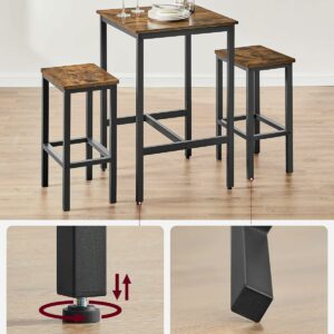 A kiváló minőségű forgácslap és az alsó keresztlécekkel megerősített tömör acélváz masszív szerkezetet alkot. A bárasztal állítható lábai és a bárszék billenésgátló párnái még jobban növelik a szett stabilitását.